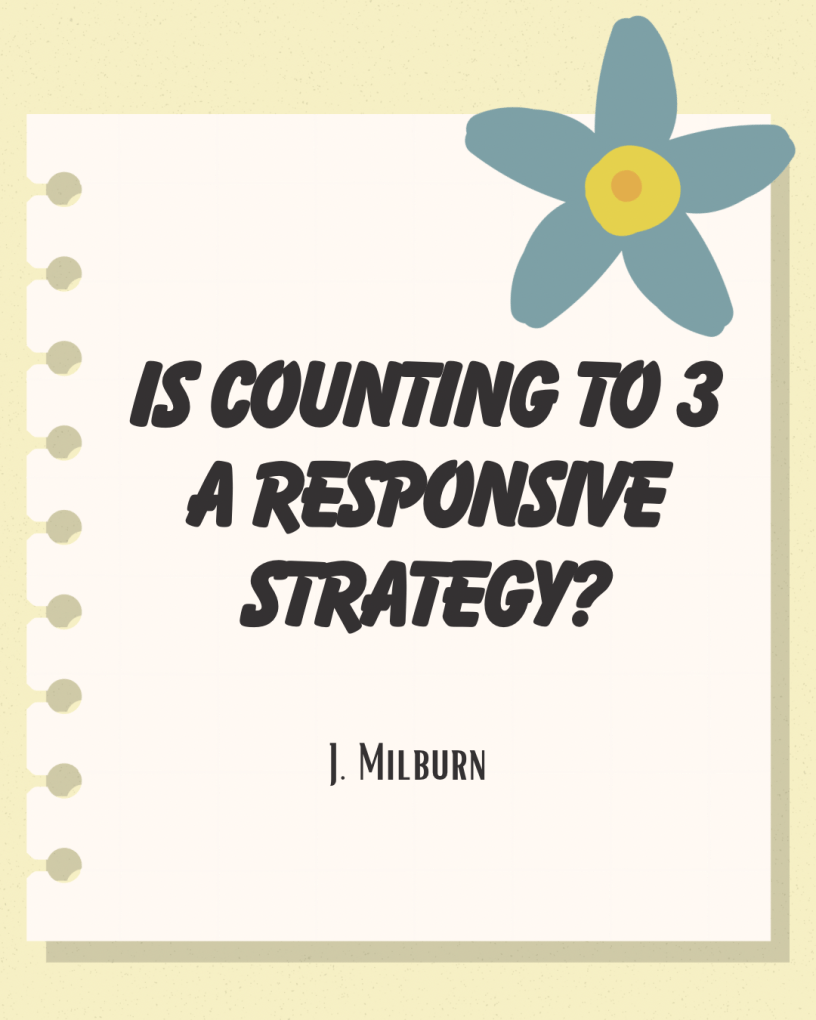 Is counting to 3 a responsive strategy? I think a lot of people will feel defensive about this, as it is such a common strategy. However, the focus is on obedience. It is responsive to the parents need for the child to obey their command. It may feel as though you are giving them the time they need to listen to what you want them to do but during those three seconds, what is happening in your child’s brain? They’re panicking! The count down to them means in 3 seconds I’m going to be forced to stop doing what I want to do.